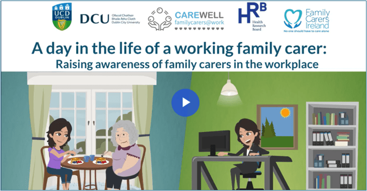 Based on the experiences of family carers who took part in our research, we produced a video entitled ‘A Day in the Life of a Working Family Carer‘, to demonstrate what a typical work day might look like for a family carer who balances work alongside caregiving responsibilities. Using direct quotes from family carers, we hope that this video helps to raise awareness of the multiple and often unpredictable demands facing working family carers in their day and illustrate the realities of juggling work and care. The video also provides some useful steps that organisations can take to help family carers to combine work with their caregiving responsibilities.